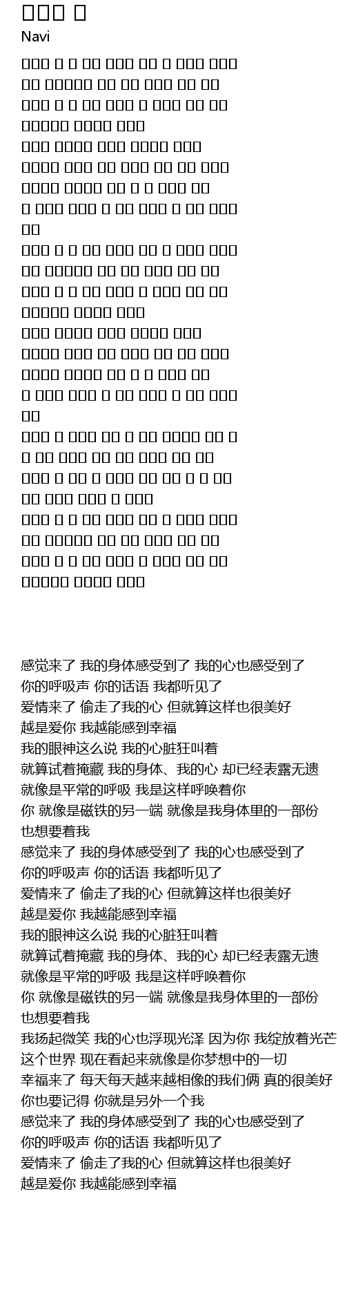 | [03:43.829] | 感觉来了 我的身体感受到了 我的心也感受到了 |