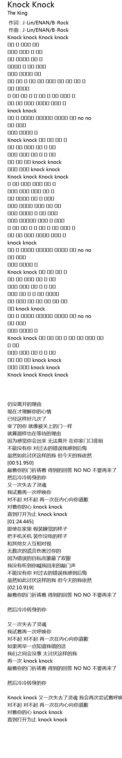 | [02:12.553] | 敲着你的门祈祷着 得到的回答 NO NO 不要再来了 |