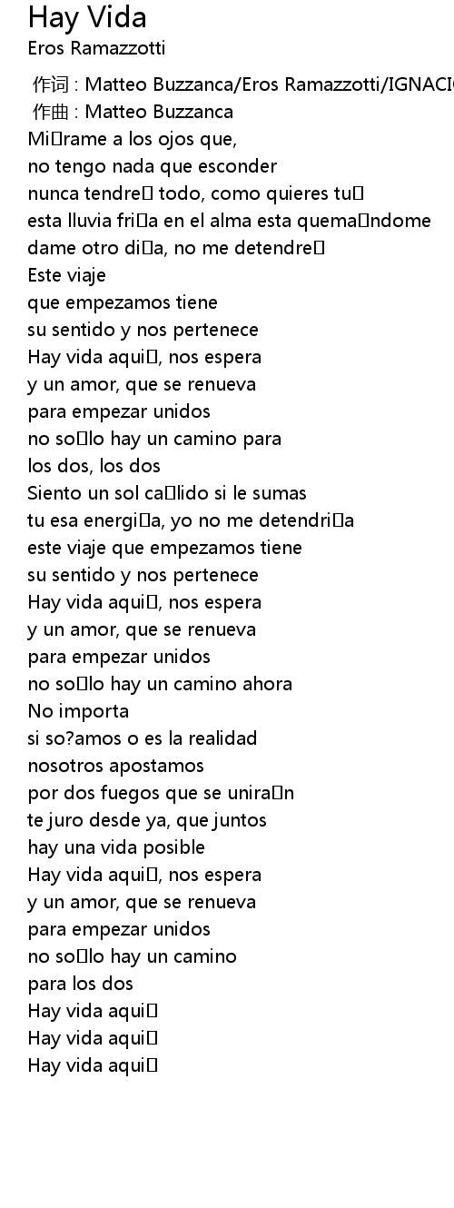 | [00:00.000] | zuò cí : Matteo Buzzanca Eros Ramazzotti IGNACIO MA O GUILLEN |