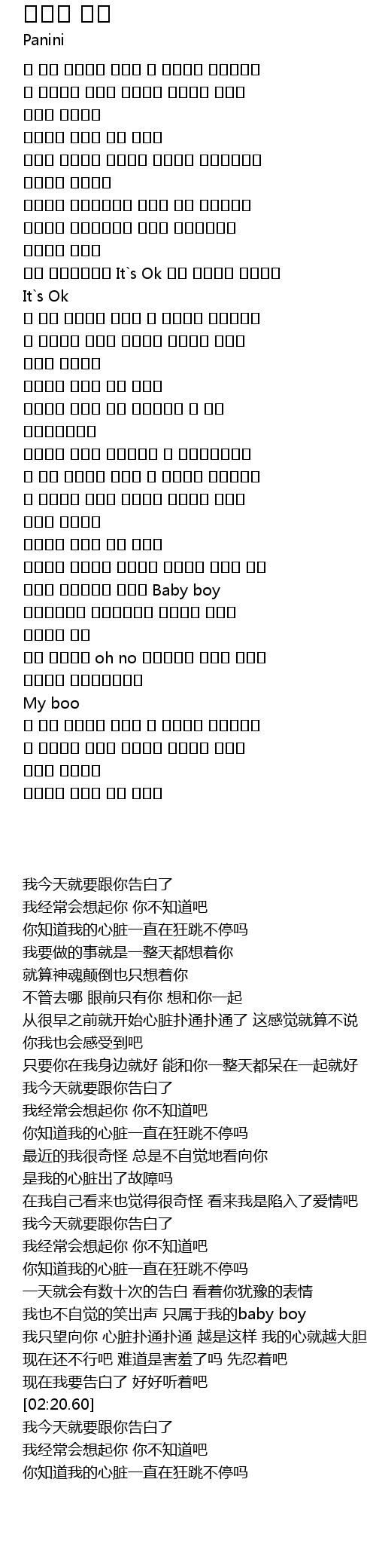 | [01:58.76] | 하루에도 수십번씩 고백할까 망설이는 모습에 나도 모르게 웃음이나와 나만의 Baby boy |