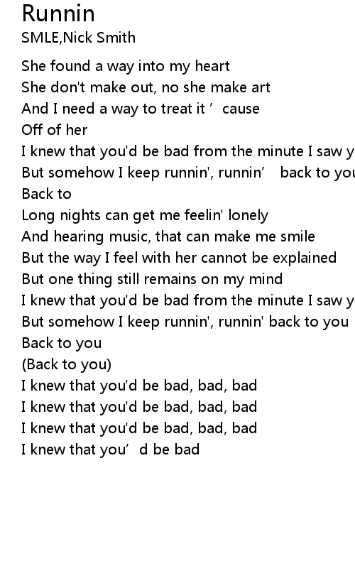 | [00:42.390] | But somehow I keep runnin', runnin’ back to you |