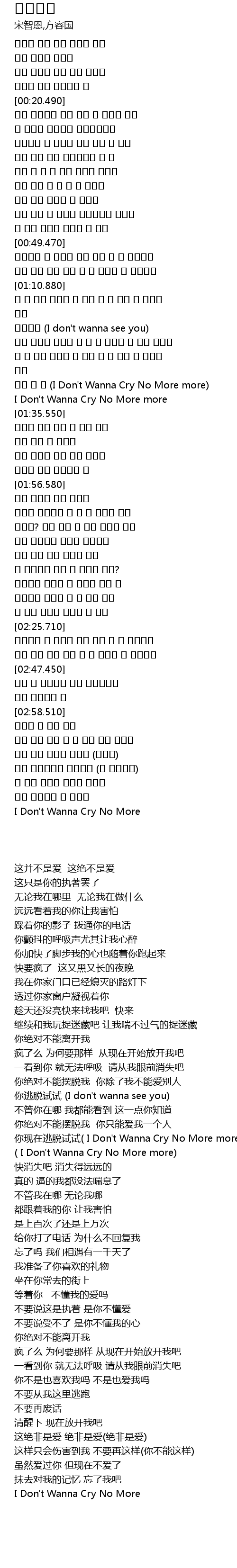 | [01:33.060] | I Don' t Wanna Cry No More more |