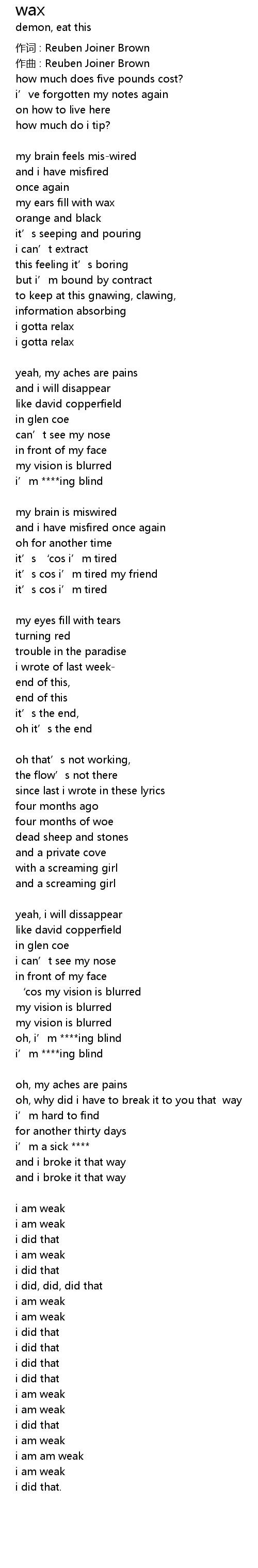 | 歌曲 | wax |
