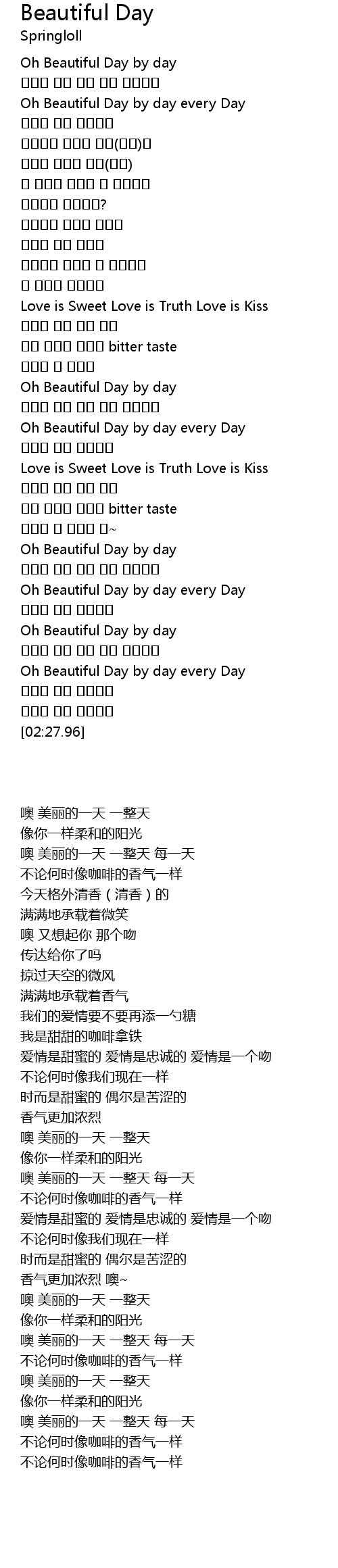 | [02:16.79] | Oh Beautiful Day by day every Day |