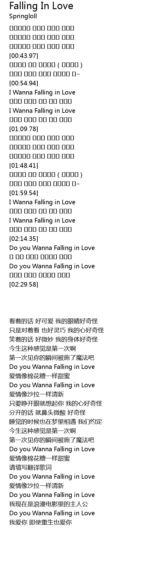 | [00:29.64] | 바라만봐도 깜찍해 내맘이 이상해 |