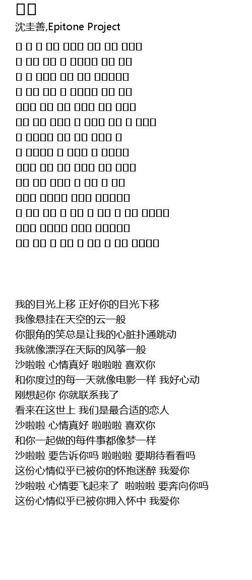 | [00:43.76] | 沙啦啦 心情真好 啦啦啦 喜欢你 |
