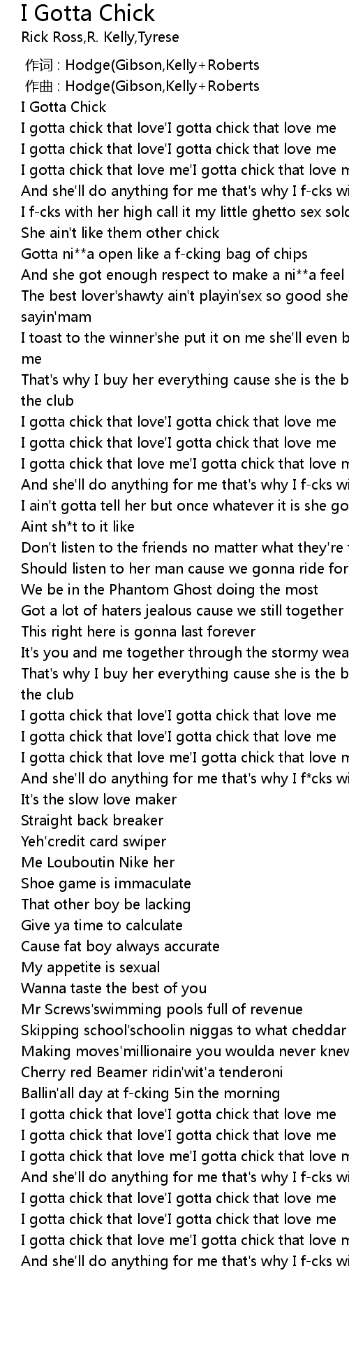 | [01:32.501] | I gotta chick that love'I gotta chick that love me |