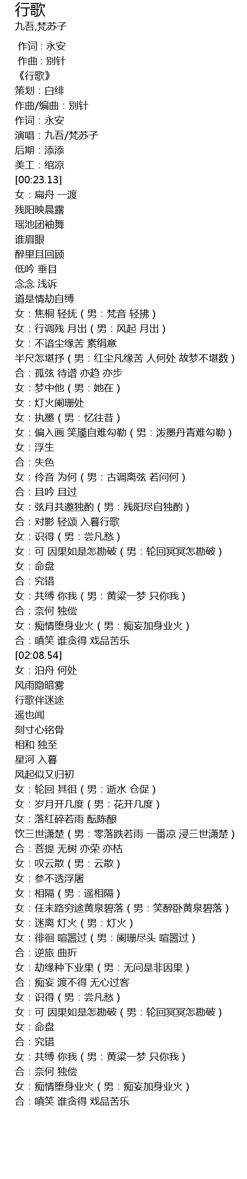 | [00:13.50] | 演唱:九吾/梵苏子 |