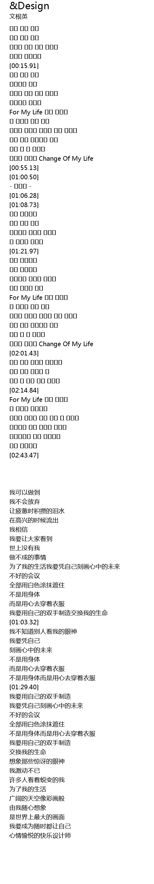 | [01:55.00] | 만들어 볼거야 Change Of My Life |