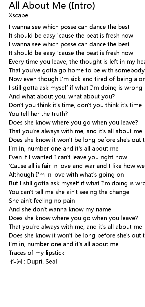 | 歌曲 | All About Me (Intro) |