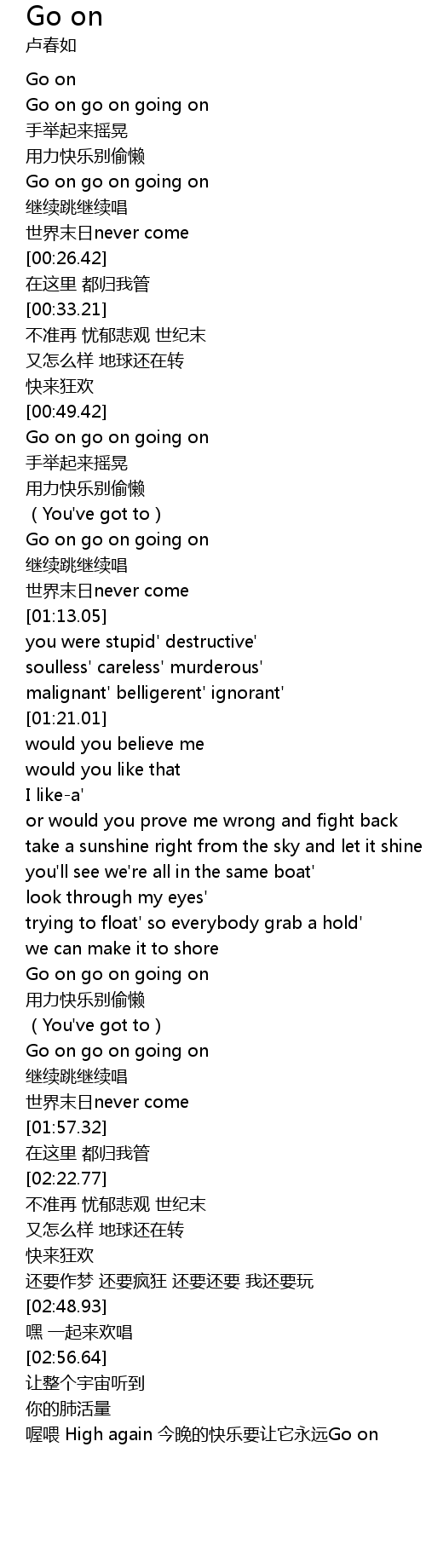 | [00:16.26] | Go on go on going on |