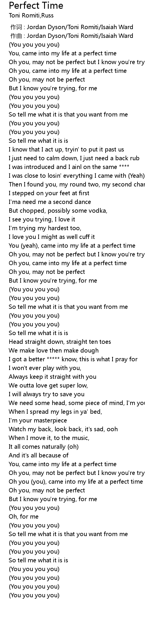 | [01:14.54] | Oh you, may not be perfect but I know you're trying |