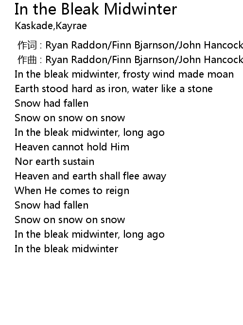 | [03:10.97] | In the bleak midwinter |