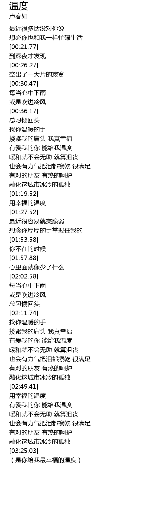 | [02:21.75] | 有爱我的你 能给我温度 |