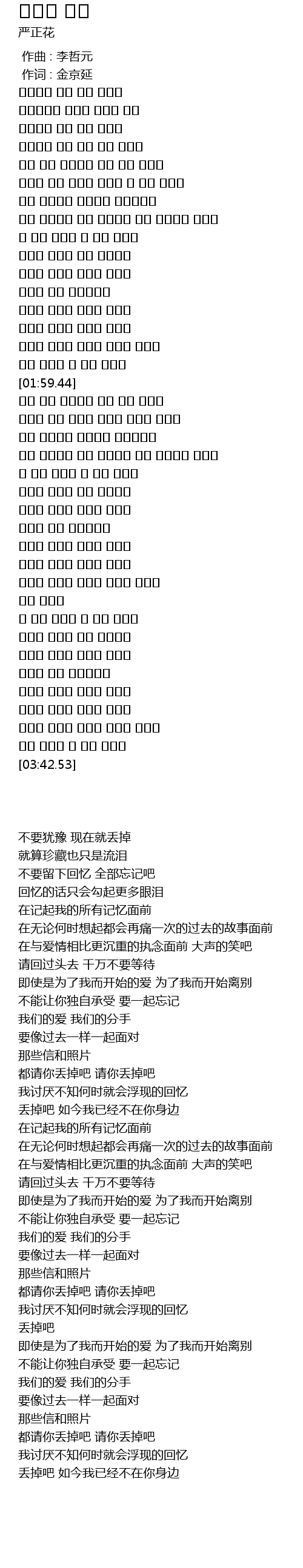 | [00:43.54] | 기억하지 말고 이젠 잊어요 |