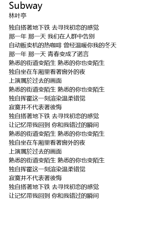 | [03:32.12] | 独自搭著地下铁 去寻找初恋的感觉 |