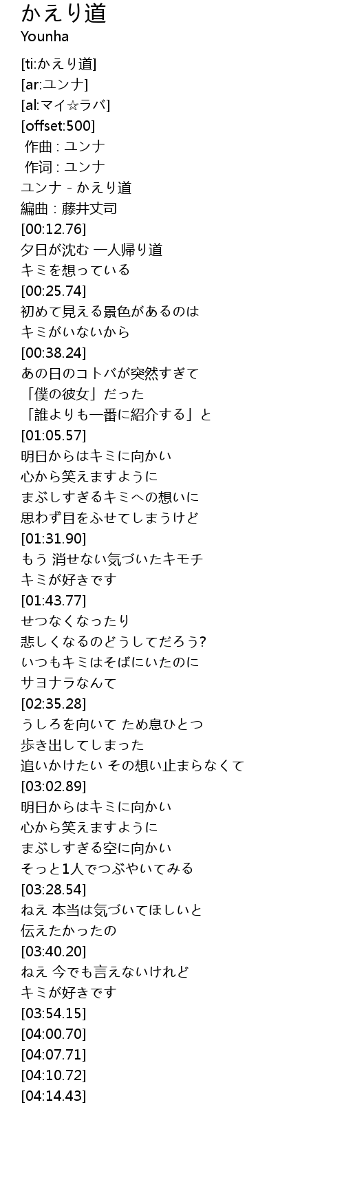| [00:00.00] | ユンナ - かえり道 |