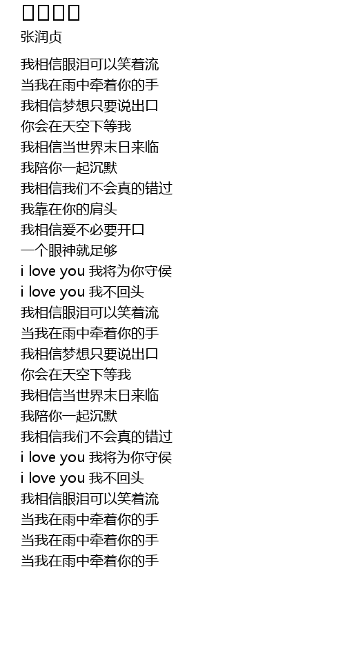 | [01:31.24] | i love you wǒ jiāng wèi nǐ shǒu hóu |