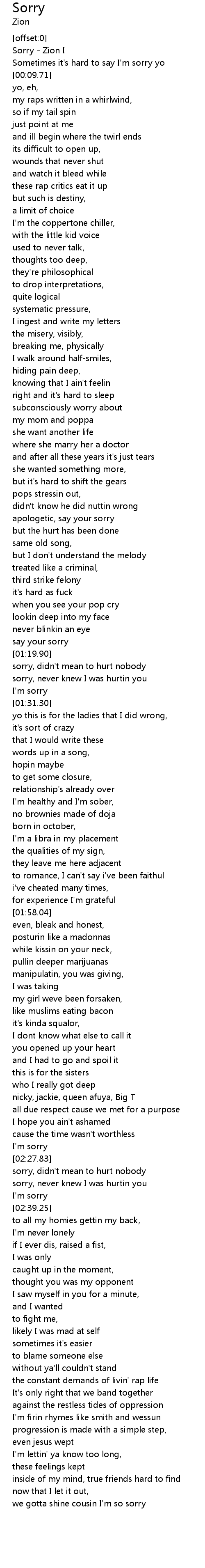 | [00:00.30] | Sorry - Zion I |