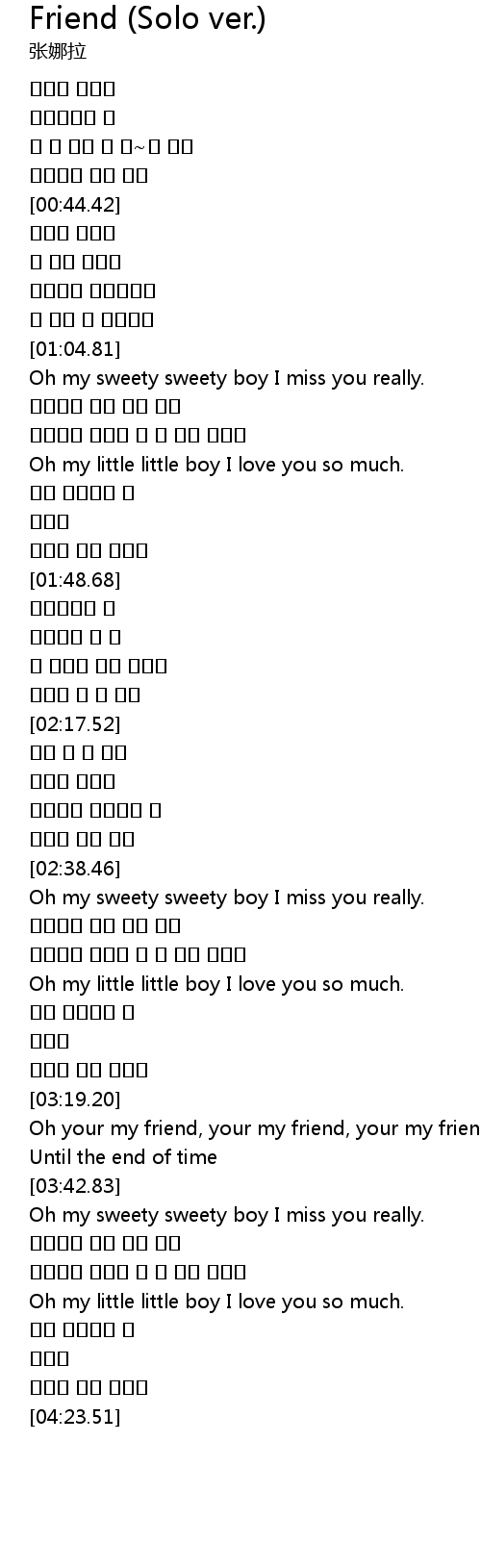 | [03:43.29] | Oh my sweety sweety boy I miss you really. |