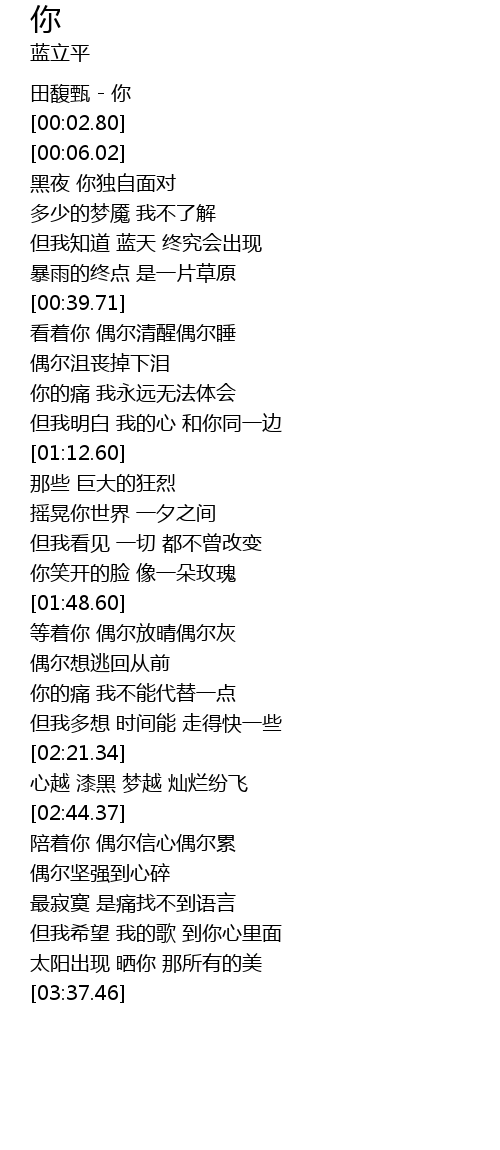 | [00:00.17] | 田馥甄 - 你 |