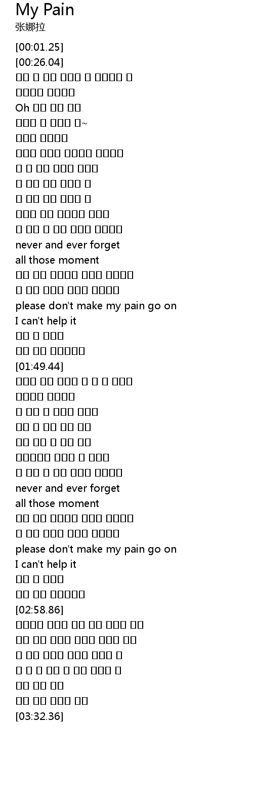 | [01:37.08] | please don' t make my pain go on |