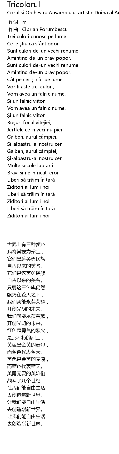| 歌曲 | Tricolorul |