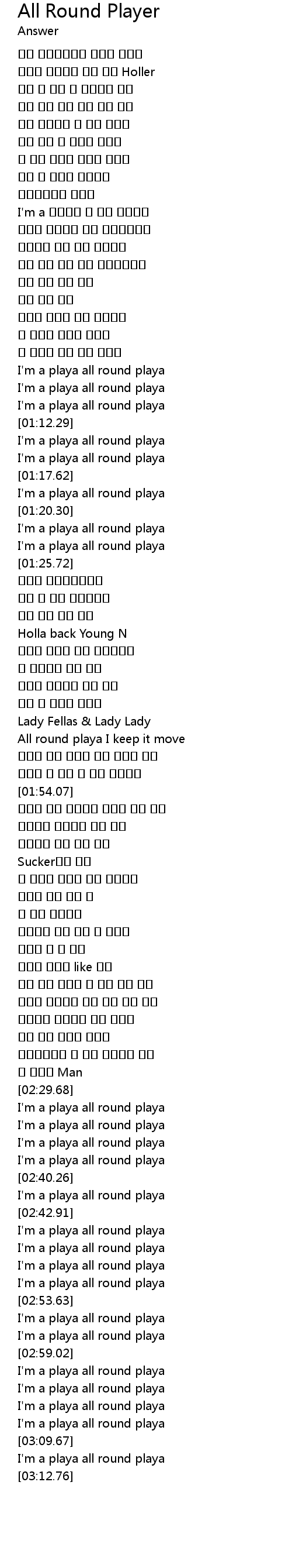 | [00:43.18] | I'm a 플레이어 난 뭐든 가능해여 |