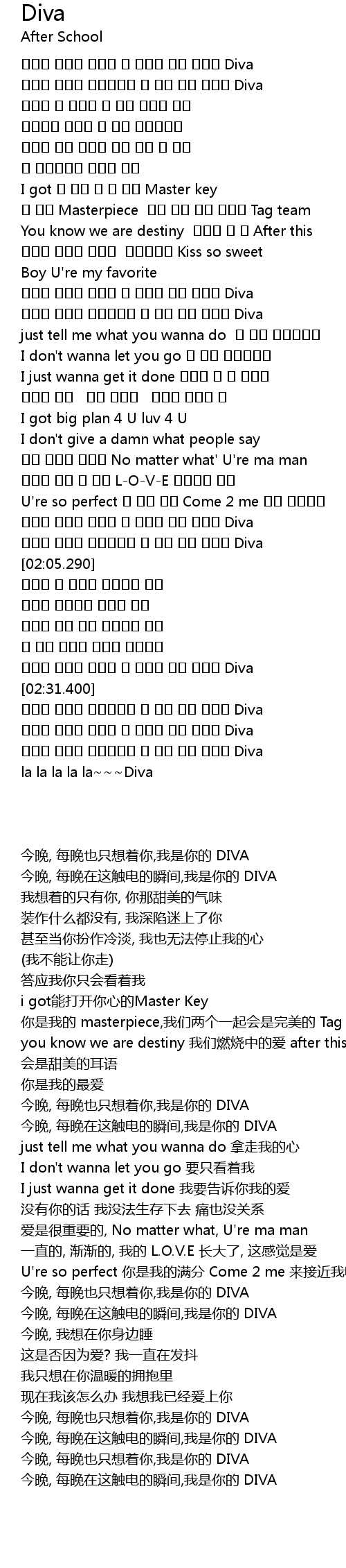 | [02:31.199] | 오늘밤 매일밤 자꾸만 니 생각나 나는 그대의 Diva |