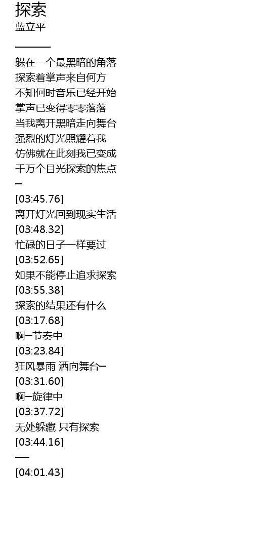 | [01:31.39] | wú chǔ duǒ cáng zhǐ yǒu tàn suǒ |