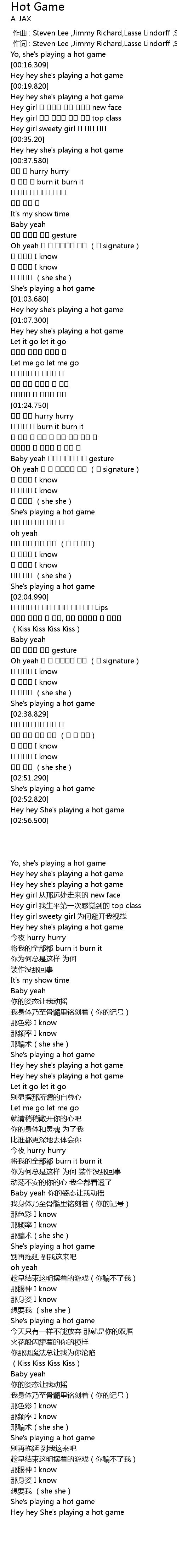 | [00:21.70] | Hey hey she' s playing a hot game |