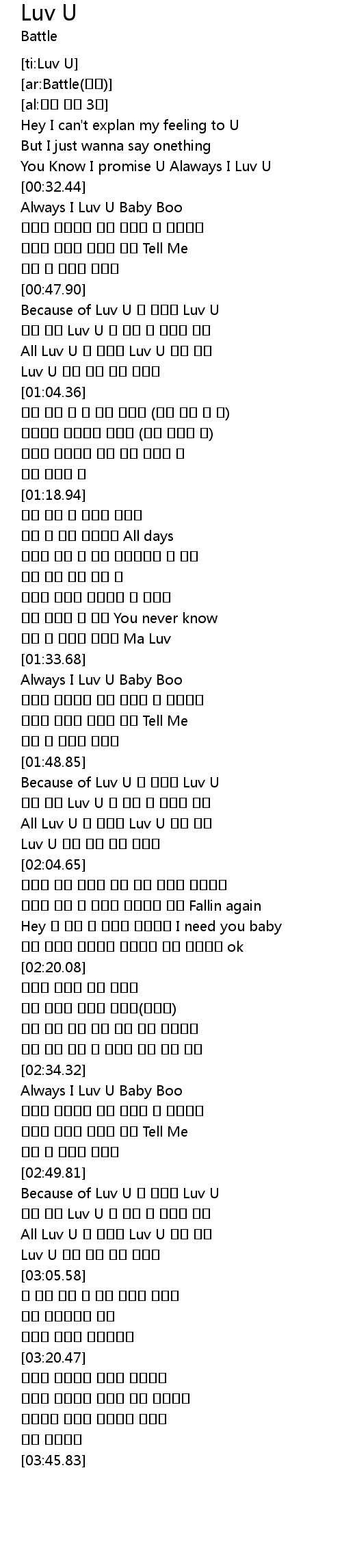 | [01:57.02] | All Luv U 널 지킬게 Luv U 너만 볼께 |