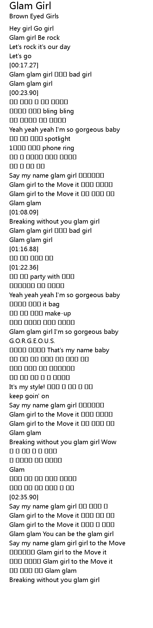 | [01:45.55] | Glam glam girl I'm so gorgeous baby |