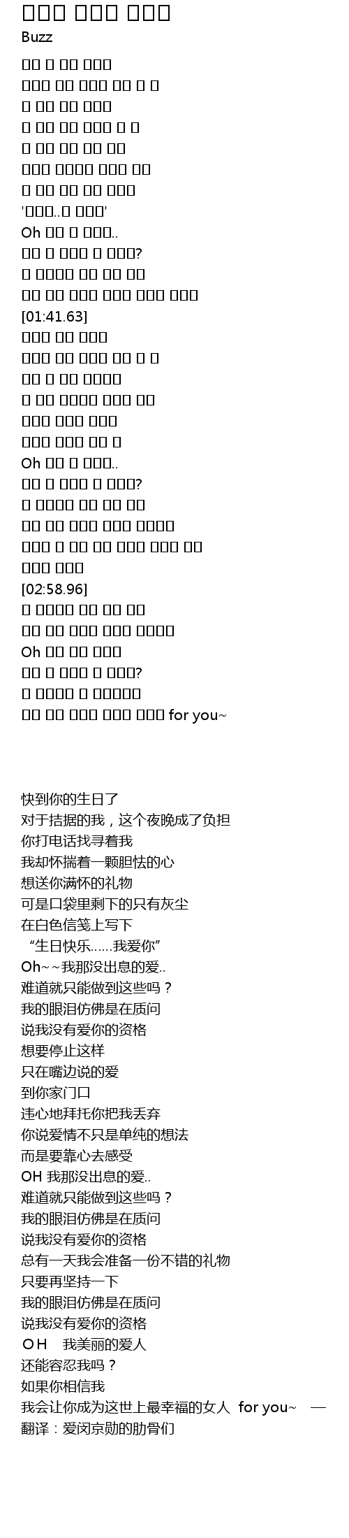 | [03:53.48] | 我会让你成为这世上最幸福的女人 for you~ — 翻译:爱闵京勋的肋骨们 |