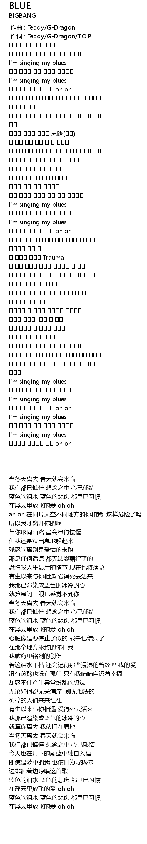 | [00:01.00] | zuò cí : Teddy GDragon T. O. P |