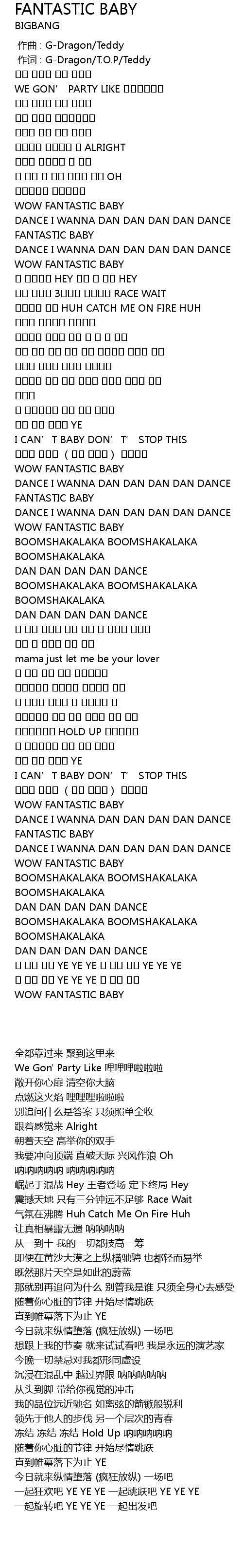 | [00:00.423] | 作词 : G-Dragon/T.O.P/Teddy |