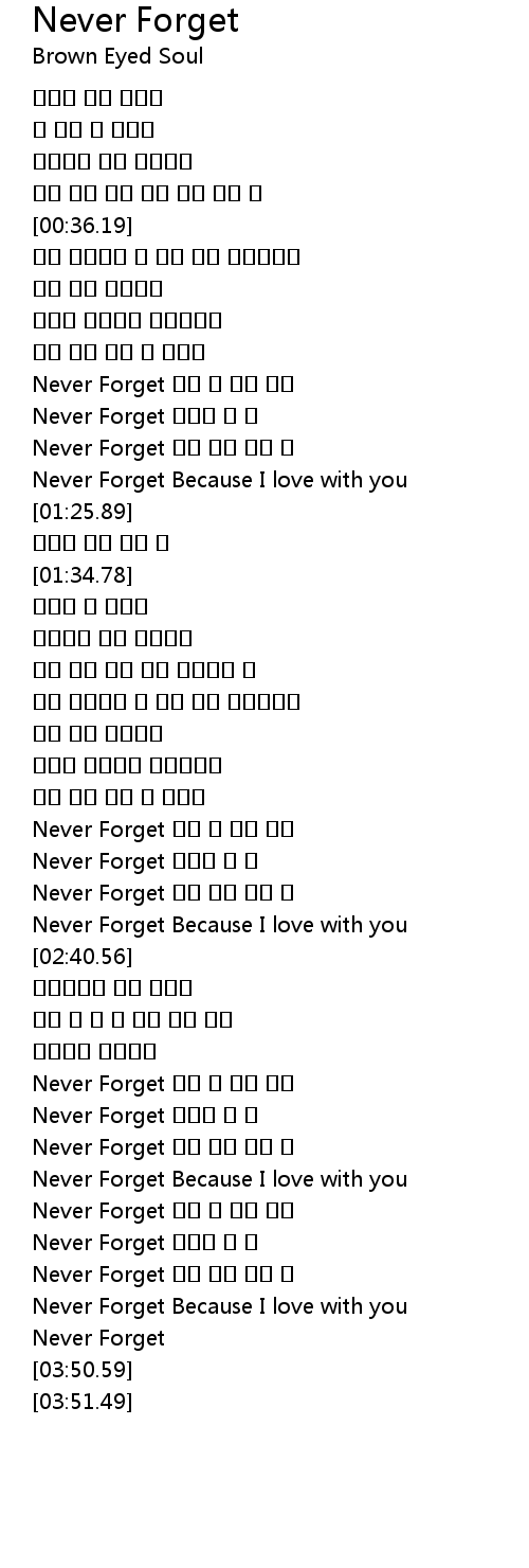 | [03:19.63] | Never Forget Because I love with you |