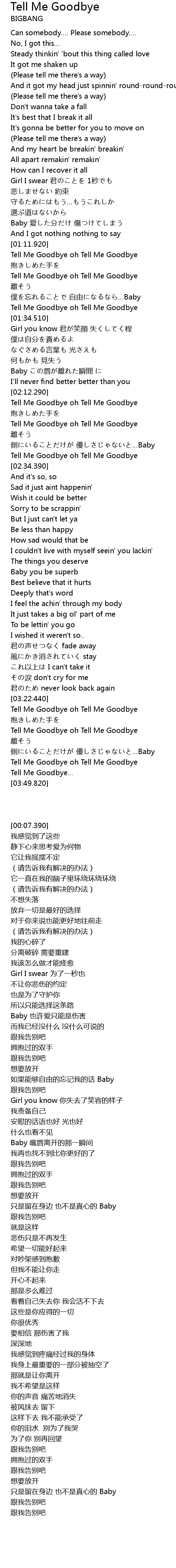 | [01:13.440] | Tell Me Goodbye oh Tell Me Goodbye |
