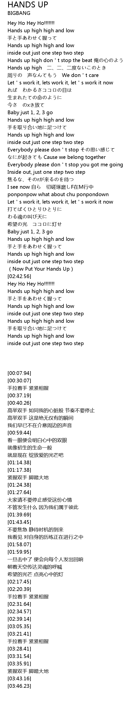 | [00:44.19] | Hands up high don t stop the beat an xin |