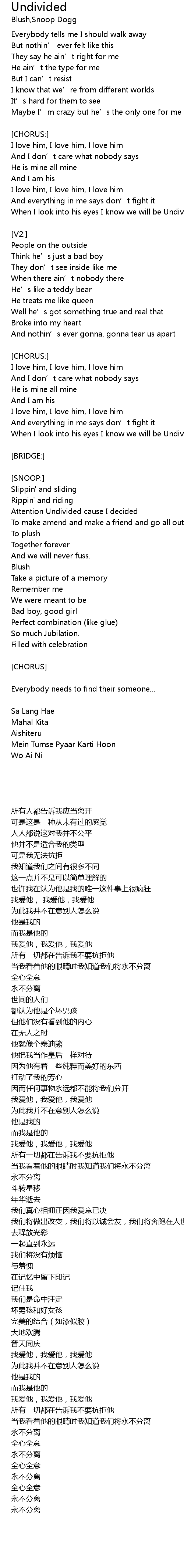 | When I look into his eyes I know we will be Undivided | |