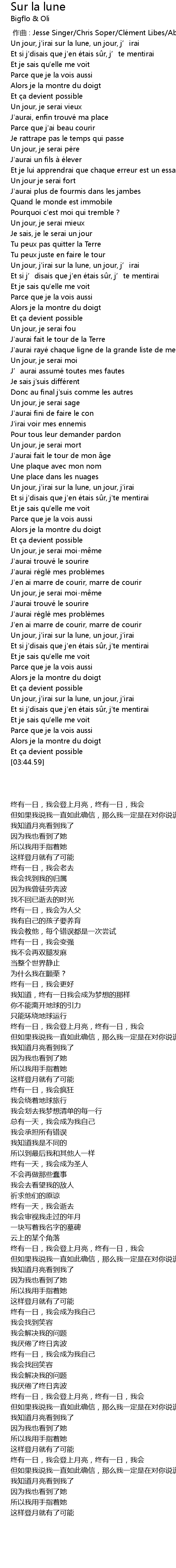 | [03:23.52] | Un jour, j' irai sur la lune, un jour, j' irai |