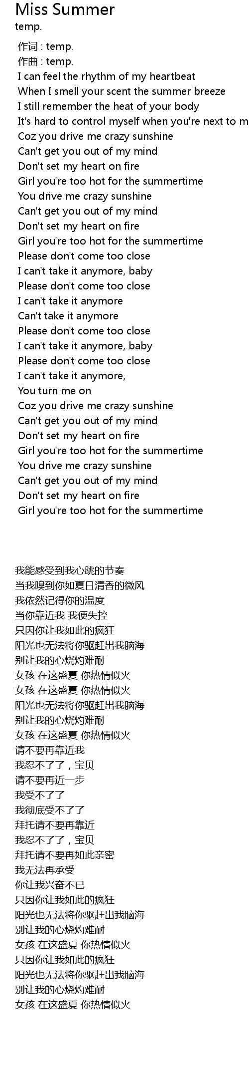 | [03:36.773] | Girl you' re too hot for the summertime |