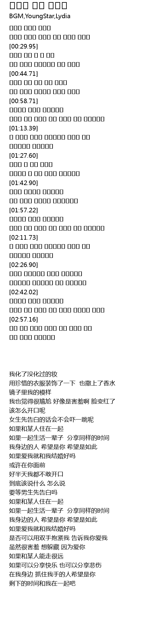 | [03:05.44] | 남은 시간을 함께해줄래 |
