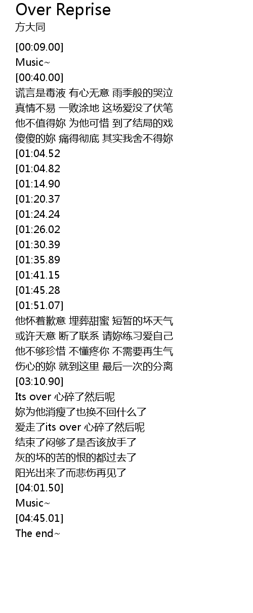 | [03:31.56] | Its over 心碎了然后呢 |
