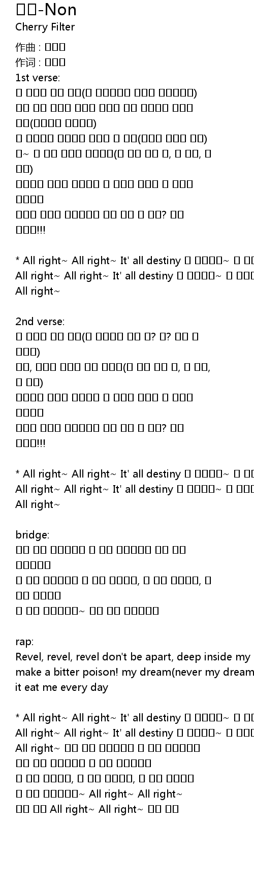 * All right~ All right~ It' all destiny 날 끌어내려~ 날 부숴내려~ |