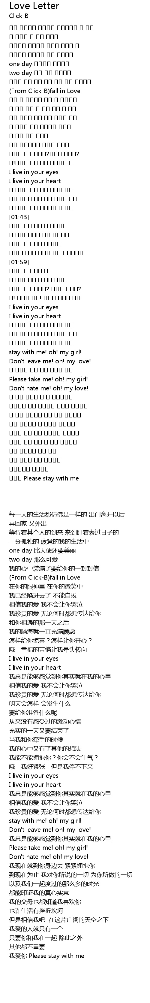 | [01:31] | 相信我的爱 我不会让你哭泣 |