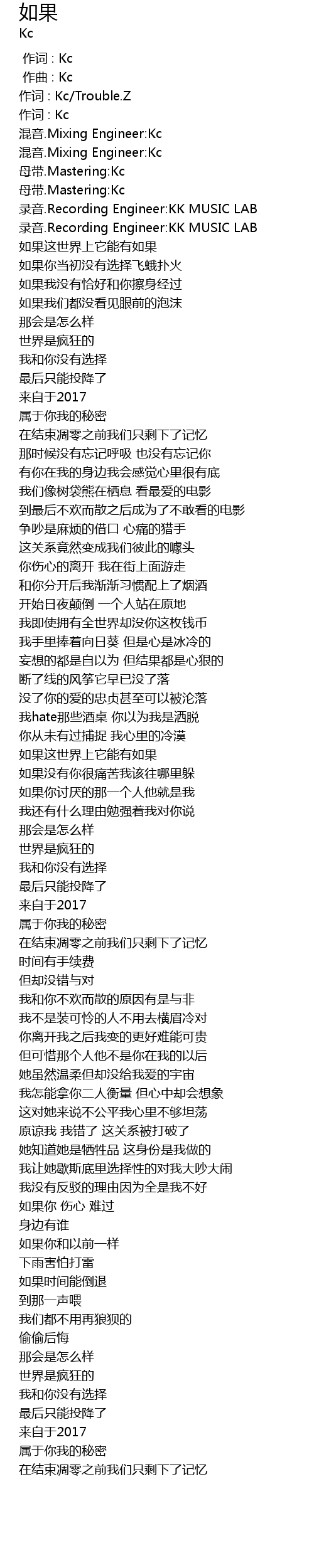 | [00:05.87] | 混音.Mixing Engineer:Kc |
