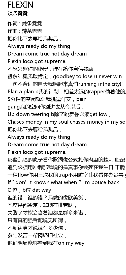 | yī jù bù hé shì de zì dà wǒ chàng qǐ lái zhēn pà running inthe cityI' m chì chà | |