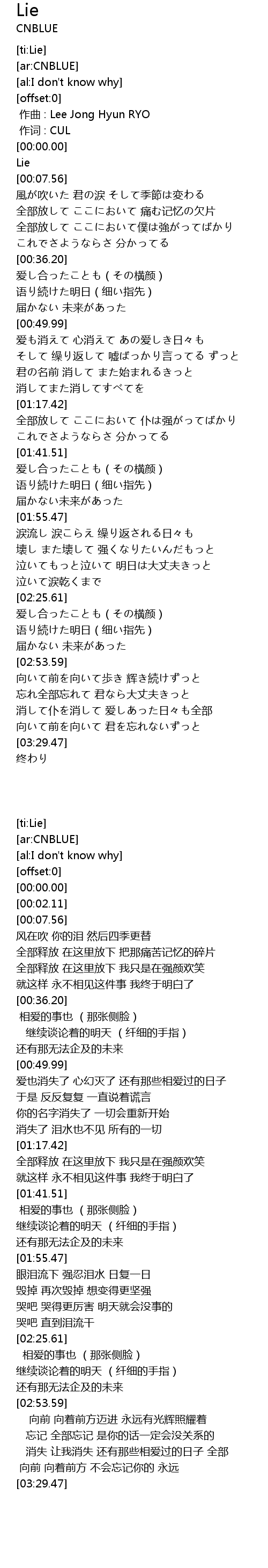 | [00:00.00] | zuo qu : Lee Jong Hyun RYO |