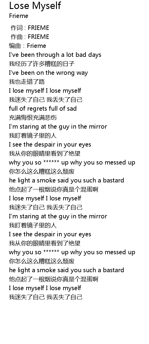 | [00:15.888] | I lose myself I lose myself |